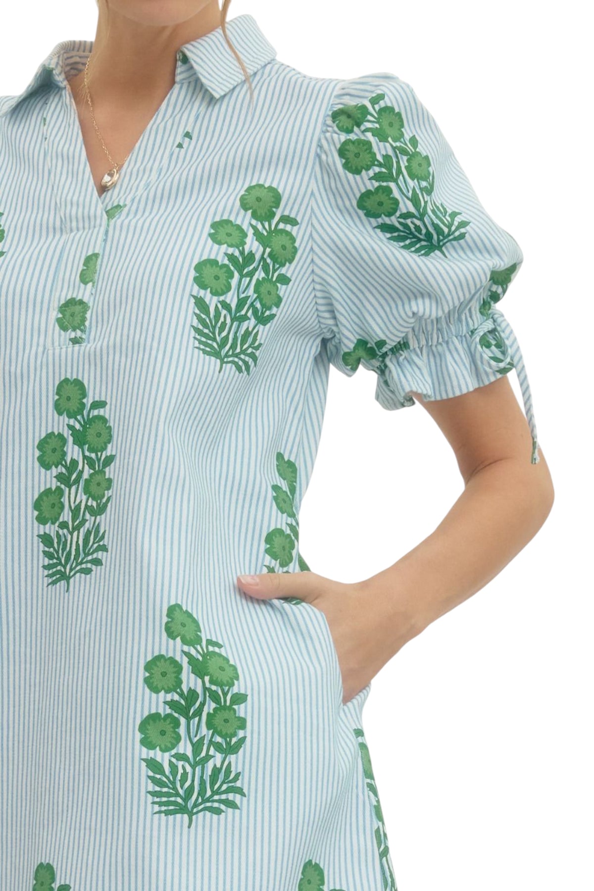 + Striped floral print mini dress