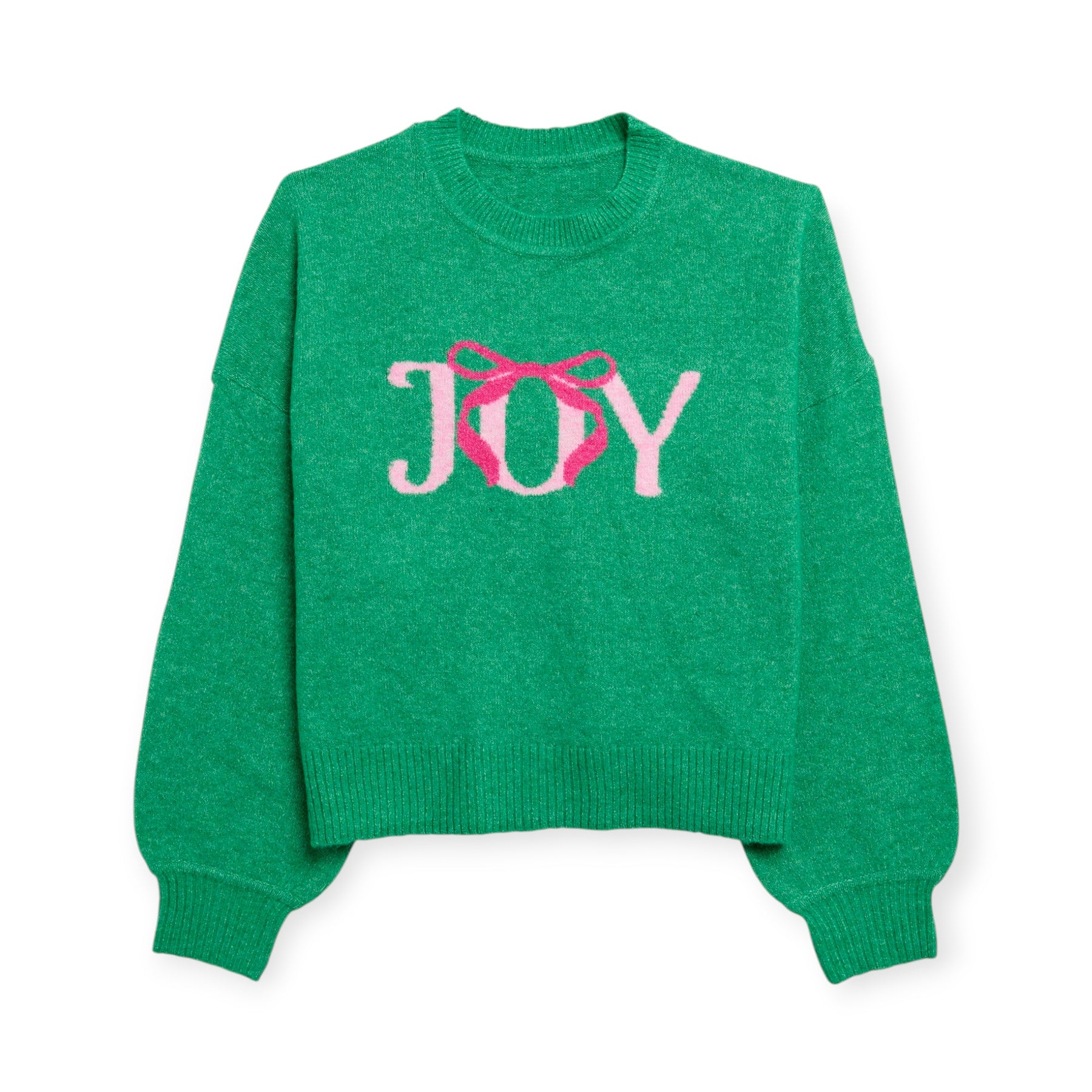 Featuring the word “Joy” in playful lettering with a pink bow in place of the “O,” this green pullover brings holiday vibes with a fun twist. Made with a soft, cozy knit and a slightly relaxed fit, it’s perfect for sipping champagne or trimming the tree. Whether you're hosting a holiday party or cozying up fireside, this sweater brings the celebration with you.