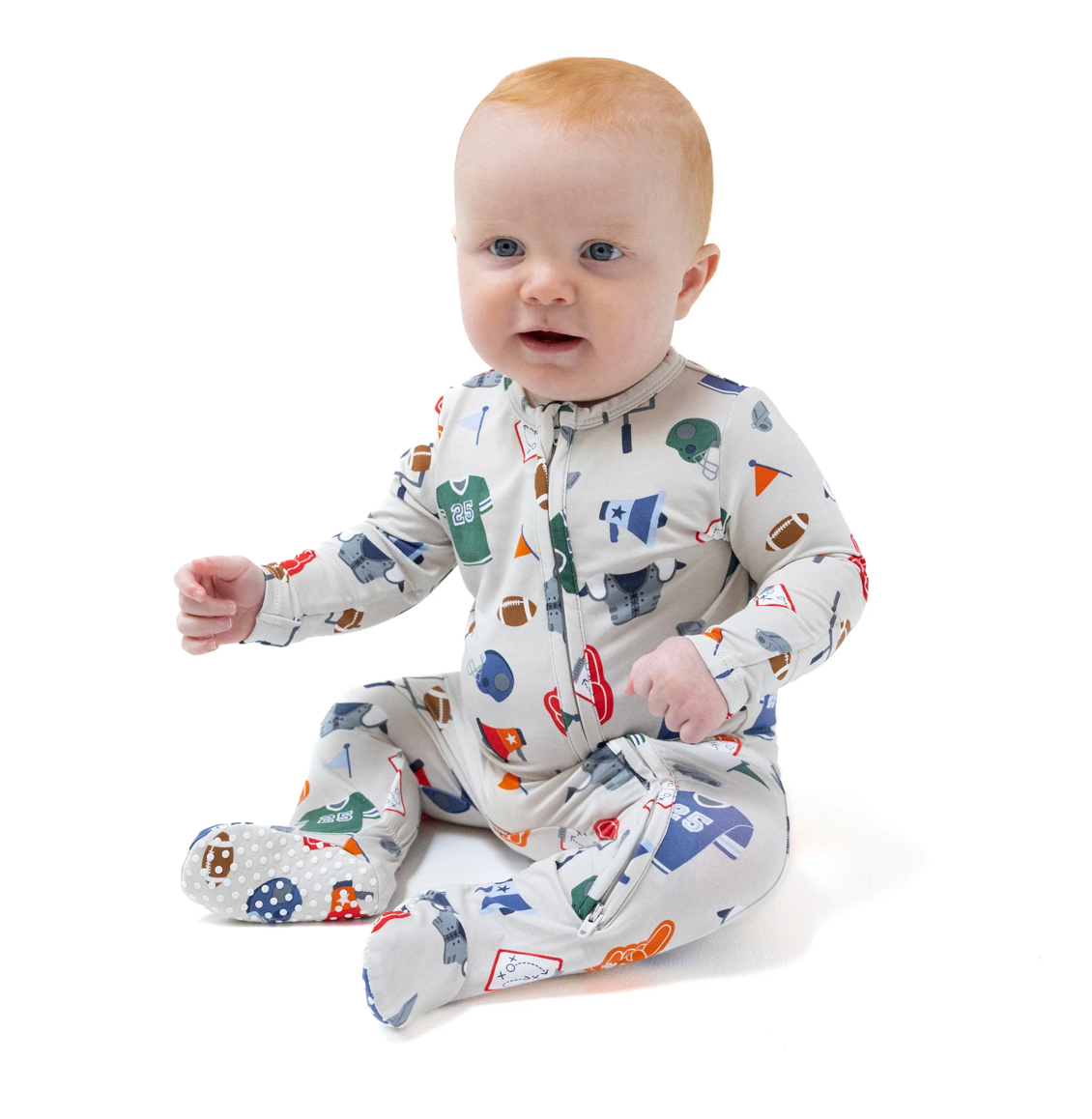 Dress your little one in effortless charm with our Ruffle Front 2-Way Zipper Footie. Crafted from buttery-soft viscose from bamboo, this footie is designed for ultimate comfort and easy changes. The delicate ruffle front detail adds a playful, elegant touch, making it a perfect choice for naptime, playtime, or anytime.